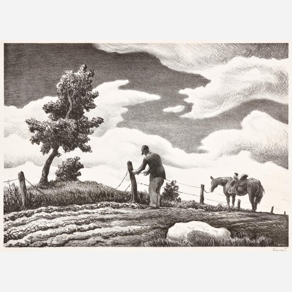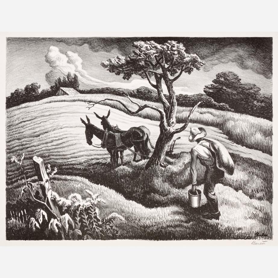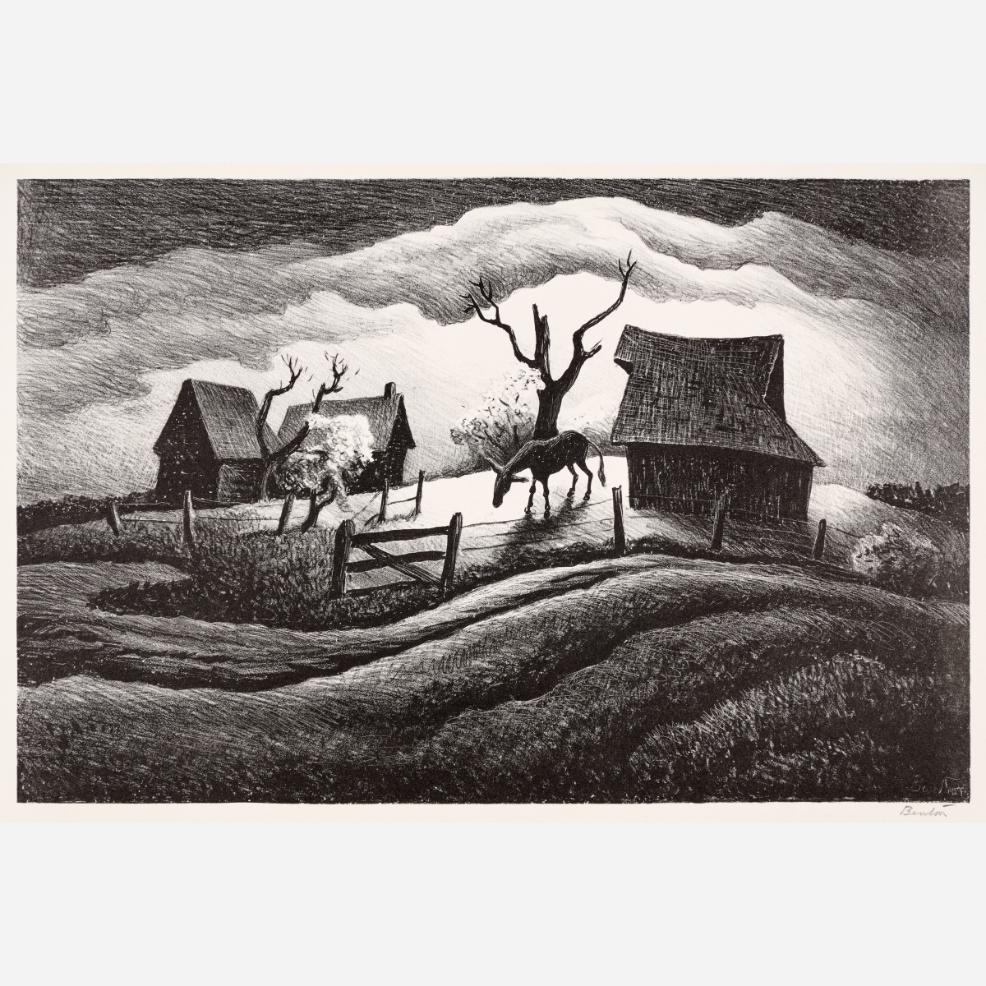 Circle Auction is proud to offer an exceptional collection of lithographs by artist Thomas Hart Benton, assembled by the late Dr. Arthur Elman, a Kansas City-based oncologist and former French consul to the Midwest. Arthur was a man of myriad interests, passions, and talents, so much so that Kansas City Magazine once deemed him the most interesting man in Kansas City. In 2014, Arthur and Carolyn Elman teamed with designer Kelee Katillac to rescue the historic Henry Blosser House in Malta Bend, Missouri, which had been declared the most endangered home in the state by Governor Jay Nixon. Through years of careful preservation, renovation, and care, the 1870s homestead was restored to its former glory, curated into a landmark of thoughtful interior design and a refuge for historical objects and fine art. Among the locally-minded art collection were dozens of lithographs by Missouri’s favorite son Thomas Hart Benton. In 2025, the Henry Blosser House was offered for sale, leaving this extensive collection of Benton imagery to find new quarters. We invite art enthusiasts everywhere to join us for this uncommon opportunity to add these outstanding American prints to your collection.
