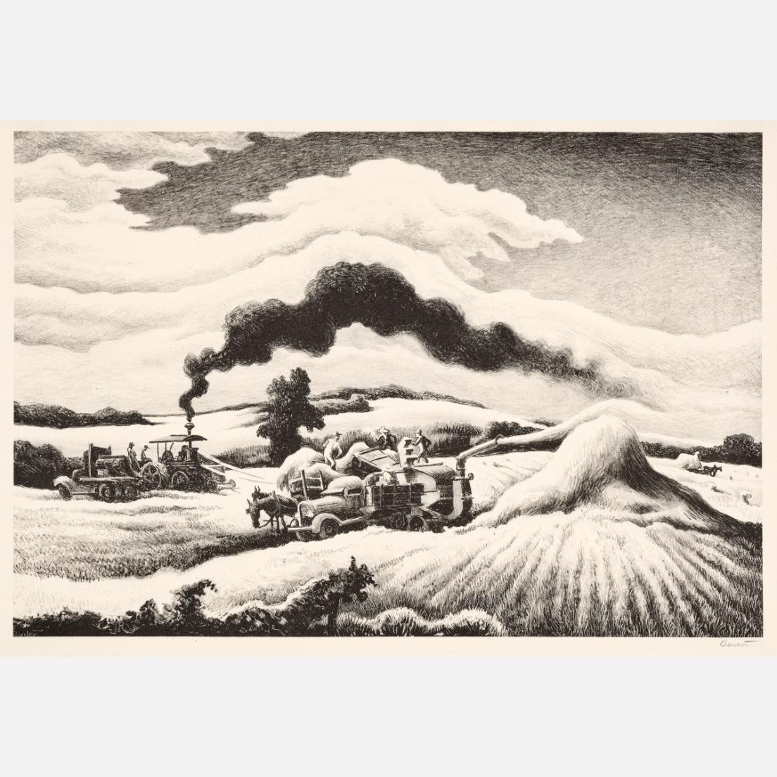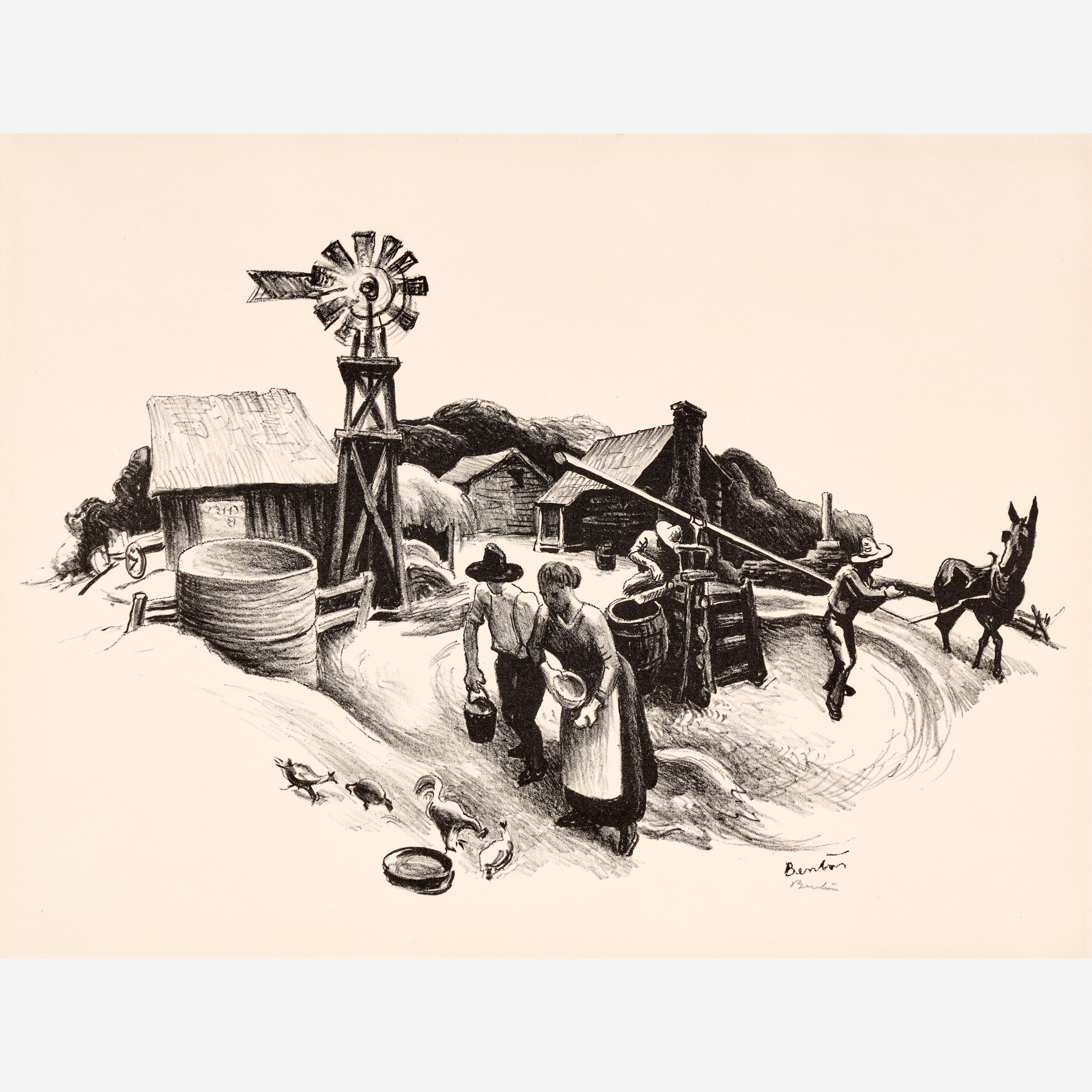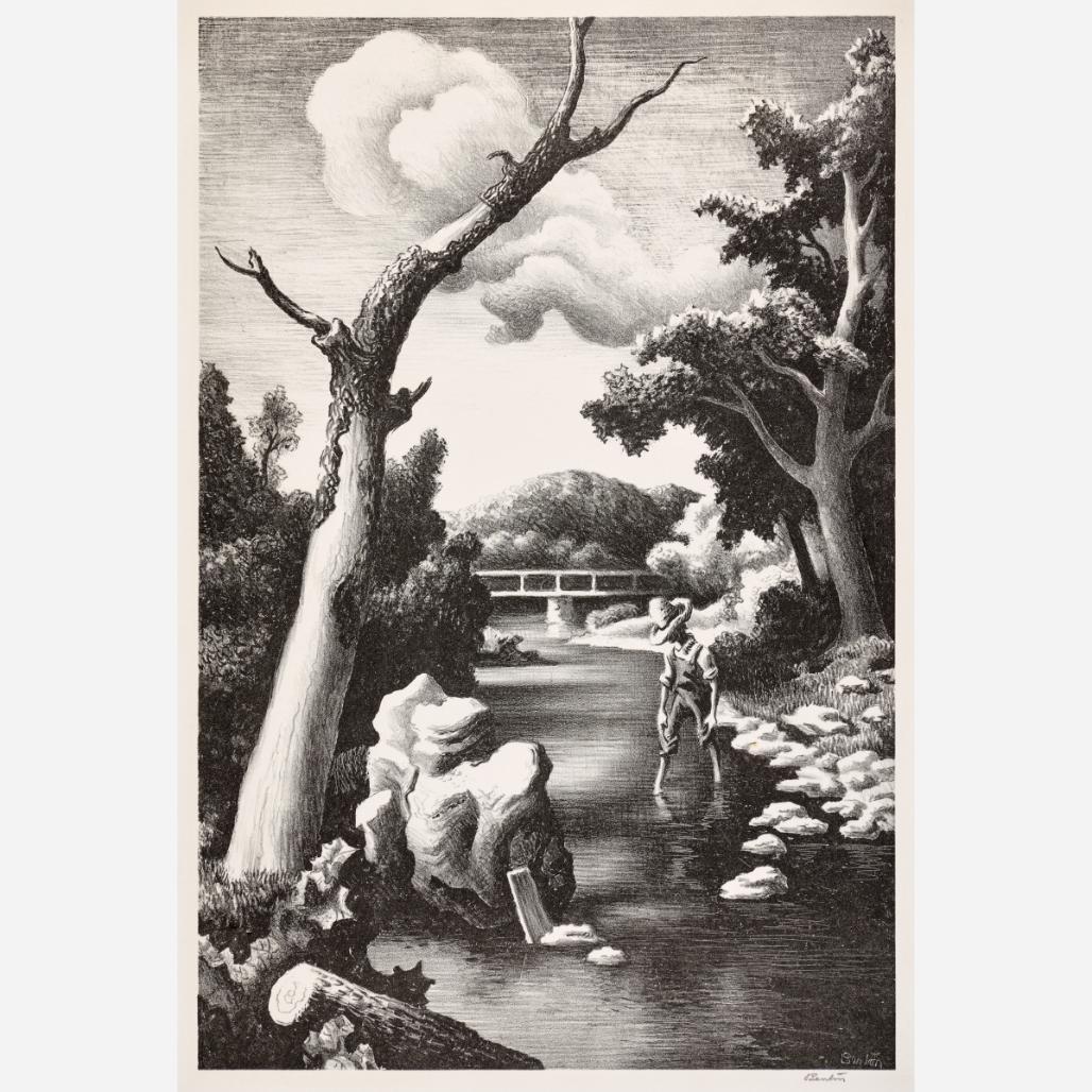 Circle Auction is proud to offer an exceptional collection of lithographs by artist Thomas Hart Benton, assembled by the late Dr. Arthur Elman, a Kansas City-based oncologist and former French consul to the Midwest. Arthur was a man of myriad interests, passions, and talents, so much so that Kansas City Magazine once deemed him the most interesting man in Kansas City. In 2014, Arthur and Carolyn Elman teamed with designer Kelee Katillac to rescue the historic Henry Blosser House in Malta Bend, Missouri, which had been declared the most endangered home in the state by Governor Jay Nixon. Through years of careful preservation, renovation, and care, the 1870s homestead was restored to its former glory, curated into a landmark of thoughtful interior design and a refuge for historical objects and fine art. Among the locally-minded art collection were dozens of lithographs by Missouri’s favorite son Thomas Hart Benton. In 2025, the Henry Blosser House was offered for sale, leaving this extensive collection of Benton imagery to find new quarters. We invite art enthusiasts everywhere to join us for this uncommon opportunity to add these outstanding American prints to your collection.