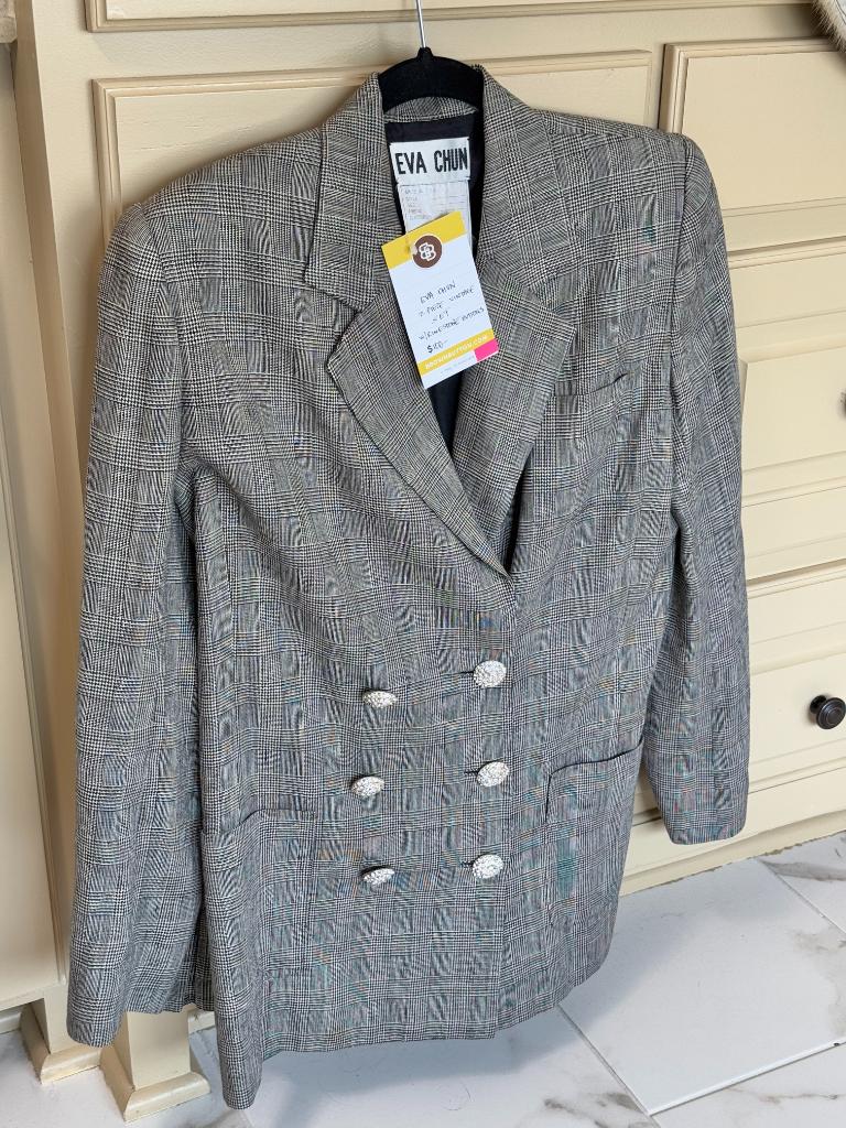 Item highlights include: Alaskan Fit and Flare Midi Length Lynx Fur Coat, Fleurette Italian Wool Two Button Overcoat, Vintage Ralph Lauren Purple Label Plaid Equestrian Jacket with Belt and Gold Buttons, Thierry Mugler Black Wiggle Dress, Thierry Mugler Barbie Pink Suit Set, St. John Black Shift Dress with Rhinestones – New With Tags, Karl Lagerfeld Yellow Z Piece Set with Gold Buttons, Fleurette Caramel Coat in 100% Italian Wool, Fleurette Black Italian Wool Mandarin Collar Jacket, Todd Oldham Red Suit Set with Gold Embellishments, St. John Purple Tweed Cropped Jacket – New With Tags, Vintage Yves Saint Laurent Rive Gauche Red Jacket with Belt, St. John Pale Purple Blue and Teal Tweed Jacket with Gold Buttons, St. John Cream and Silver Knit Bandeau Dress, St. John Blue Black and White Tweed Knit Four Button Quarter Sleeve Jacket, Ralph Lauren Purple Label Black Double Breasted Equestrian Jacket, St. John Pale Purple Blue and Teal Tweed Dress, St. John Blue Grey Knit Tank Dress, Vintage Ralph Lauren Purple Label Plaid with Gold Buttons Dress, Vintage Ralph Lauren Country Southwest Sweater, St. John Studded Shift Dress Black Knit, St. John Purple Tweed Tank Press – New with Tags, St. John Blue Grey Knit 60s Style Jacket, Ralph Lauren Purple Label Green Mandarin Collar Jacket, Vintage Pamela Dennis Red and Gold Dress and Jacket, L’Angence Brooke Cropped White Blazer, Burberry Plaid Poncho