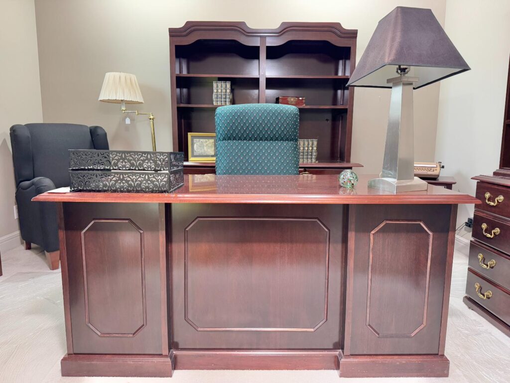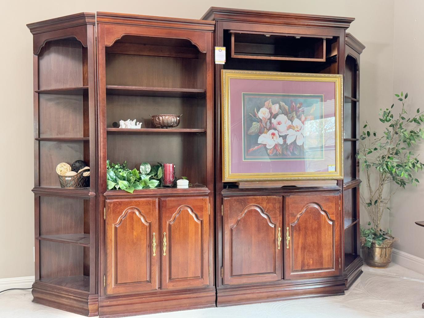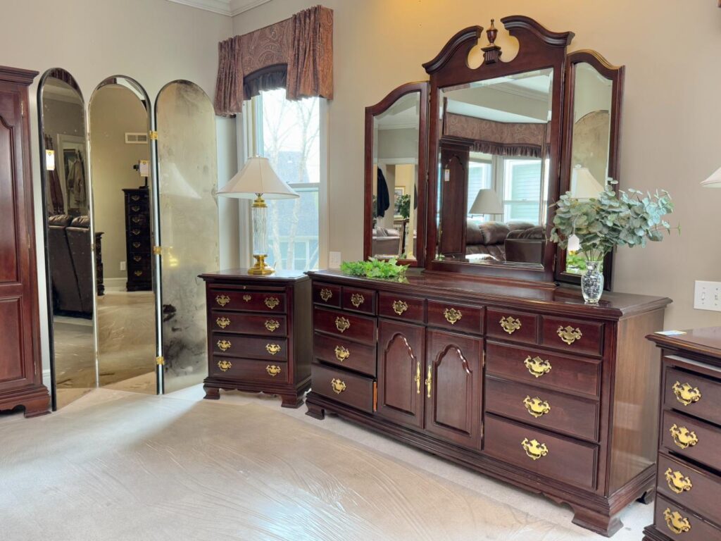 Hickory Furniture Queen Anne Style Chest of Drawers, Office Credenza with Hutch, American Heritage Billiards Bar Stools, Kincaid Furniture Tall Narrow Chest of Drawers, Media Console Cabinet, La-Z-Boy Red Armchair with Matching Ottoman, Set of Four Faux Leather Arm Chairs with Casters, Dresser with Vanity Mirror, Early Mid Century Modern Executive Desk, Kincaid Furniture Cherry Mountain III Sideboard, Solid Wood Frame Bunkbed, Four Piece Entertainment Center, Kincaid Furniture Armoire, Round Pedestal Dining Table, Wood Coffee Table with Hidden Compartment and Two Drawers, Kincaid Furniture Highboy Style Media Cabinet, Chest of Seven Drawers, Green Trestle Dining Table with Six Chairs, Kincaid Furniture Cherry Mountain III Lighted China Cabinet, Walter of Wabash Black Hutch with Glass Front Doors, Aspen Home Media Console, Schnadig Dresser with Vanity Mirror, King Size Four Poster Bed Frame, Queen Size Tuscan Style Bed, Home Stretch Frontier Double Reclining Two Seat Sofa, Home Stretch Frontier Double Reclining Three Seat Sofa, Kincaid Furniture Cherry Mountain III Extension Dining Table with 6 Chairs