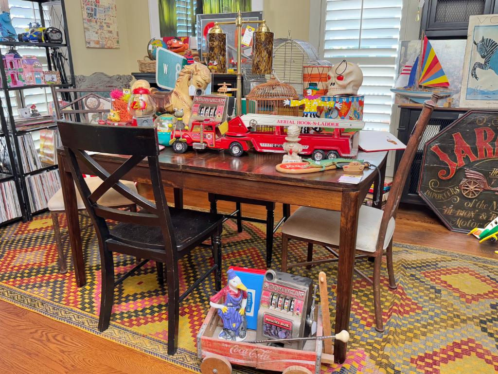 Harrah’s Slots 4 Us Toys for Grown-Ups Slot Machine, Bernina Activa 145 Sewing Machine, Black and White Poseable Mannequin, 1940’s Philco Floor Model Radio