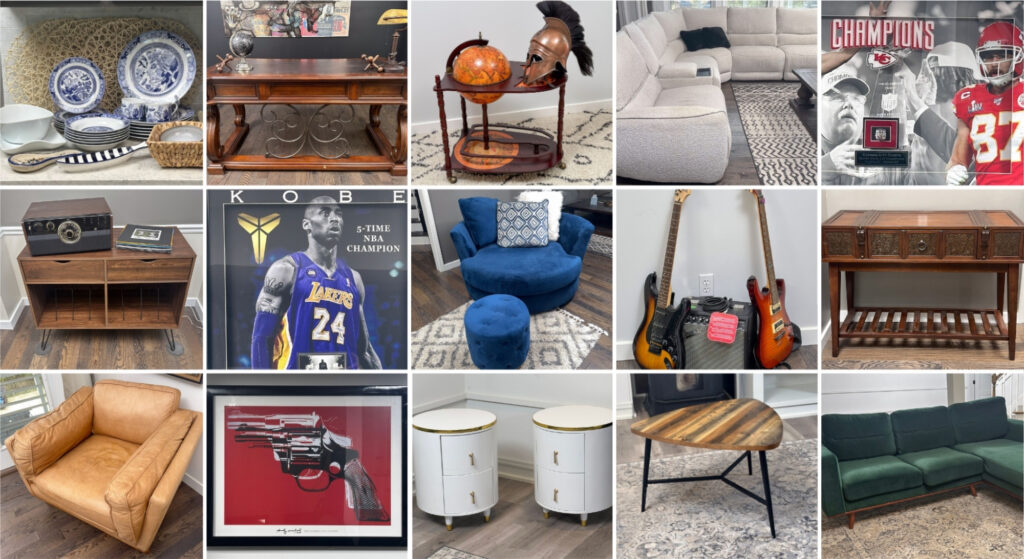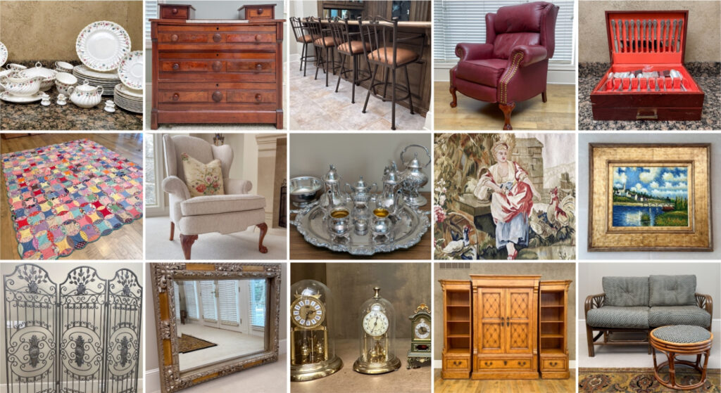 Each estate sale is located in a different house, often in Leawood, Overland Park, and the Kansas City area. We post the address for each of our sales the day before the sale opens. You can find the address on the sale listing in our upcoming sales page or you can join our email list and we’ll send you an email with all the sales info including the address.